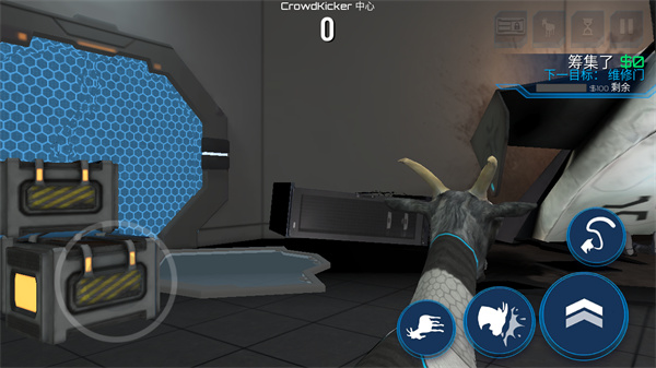 1、一进去有提示,叫我们维修门,其实很简单,我们只需要不断获得金钱就行了。获得金钱的方式就是地上的那些箱子,用山羊撞击后就会有金币,旁边的人撞击也会有金币。
