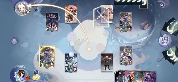 整个打牌的过程,其实就是围绕4V4的式神战斗展开,你可以用卡牌来强化这些式神,以提高他们的战斗力,最终将对方牌手的血量归零或者让对方提前抽空牌库,即可获胜。