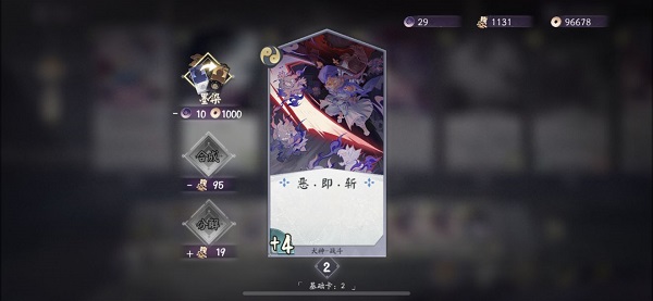 同时,式神的血量也会得到刷新和覆盖。例如,当式神只剩1点生命时,使用形态牌,生命将立刻恢复至该形态牌的血量上限。因此,有些时候形态牌也可以当做回复牌来使用。