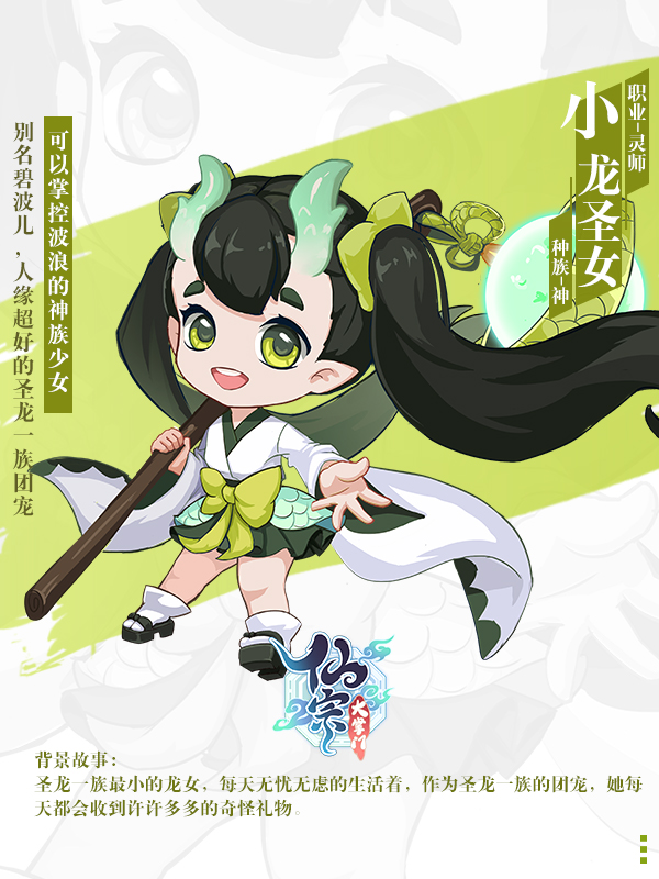 角色设定:喜欢扎着长长的双马尾在神界游荡,仙缘超好的小可爱