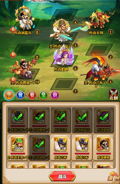 接下来介绍一下战斗,玩家所有武将都可以选择上阵,直到全部阵亡为止。那么玩家培养的武将越多越强,战斗的时候也就越游刃有余了。 每场战斗武将的剩余血量会保存到下一场战斗中,所以辅助类的英雄极为重要,毕竟要长胜不败,那得给我奶几口对吧,这边给大家推荐几个强力奶:蔡文姬、貂蝉、华佗,都是非常棒的辅助武将。