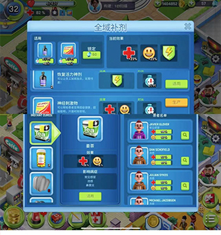 进入药厂和研究所。生产药品和补剂。可以进入全城补剂使用补剂,可以提高每个科室每个病人的健康值和快乐值。药品可以用于群体治疗,一次治疗多人