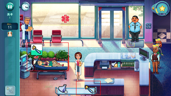 快速分配患者将在您的分数上增加一份奖励。快速治疗患者可为您的患者增加额外的心。您可以快速完成一个动作以赢得更多奖励!