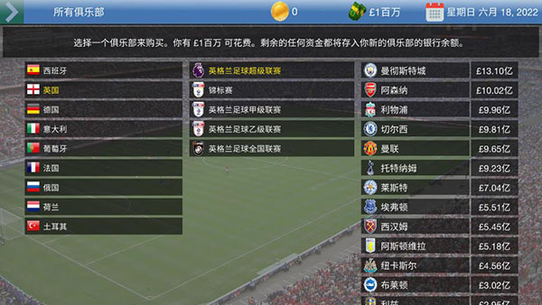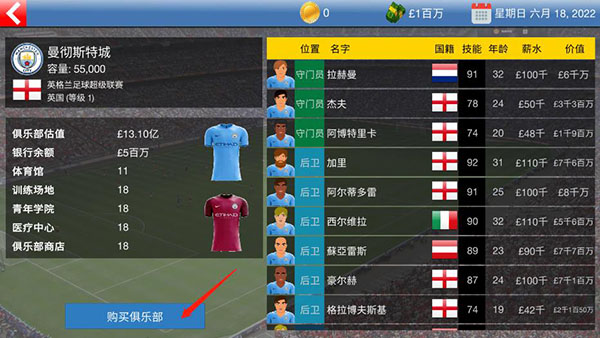 4、购买一个俱乐部,你只有一百万可花费,想要购买高级俱乐部就努力赚钱吧;