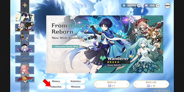 3、之后点击十连按钮即可开始愉快的抽卡之旅啦,点击卡池下方的Collection选项,即可查看当前已抽取到的卡牌