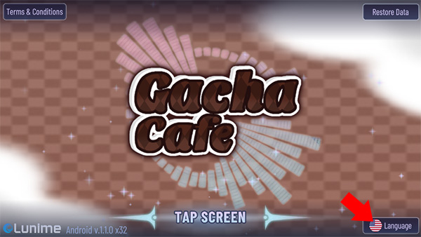 1、下载并打开加查咖啡厅,来到游戏主界面后,点击右下角的Language选项