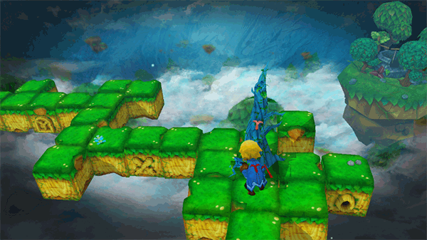 玩家要需要帮助主角找寻种子,唤醒万能之树拯救世界。游戏中玩家将操控角色在全部由方块组成的岛屿上,由于身后的悬浮岛屿会坍塌,玩家就需要靠技巧与智商将一些原本无法通过的道路铺平,才能继续前进。