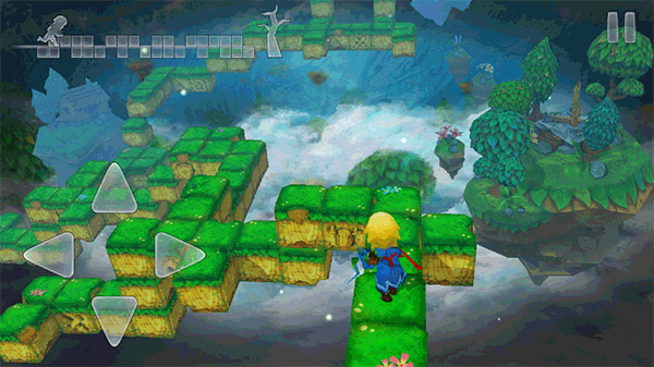 游戏采用Unity3D引擎,其画面、人物都带着浓浓的塞尔达风格。悬浮在空中的通道,空中飘浮的小平台,以及远景的白云和大海搭配得相当有立体感,再加上场景鲜艳丰富的色彩,让人置身于一个梦幻般的童话世界中。