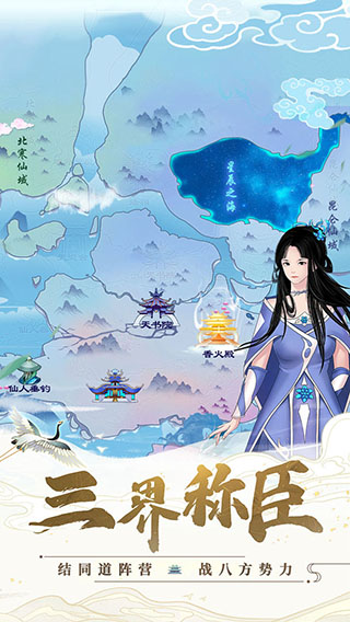 游戏中既可以征服其他门派获得贡品,功法,也可广交仙缘,提升门派声望,组团对抗魔界。
