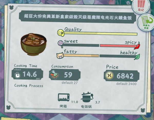①材料要选择最贵最高级的材料(消耗得快,购买次数就会多,这样可以增加菜谱,作为备用)