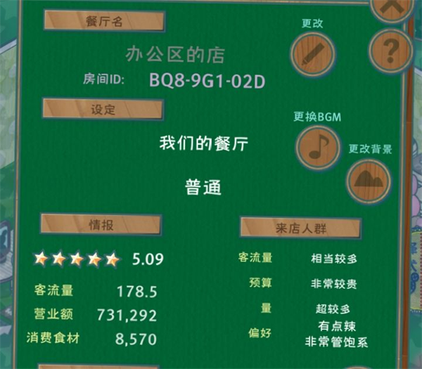客人不会嫌贵或者份量低,因为你已经用水把所有值都刷到最低了(用办公区的店试过,用这个菜也能得星),换完菜后接着挂机