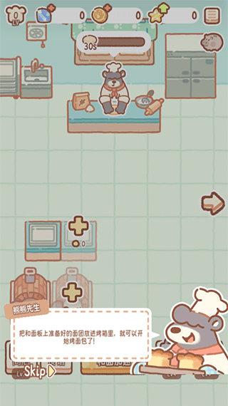 熊熊面包房游戏是一款有趣的模拟经营类游戏,玩家将作为被重金聘请来的经理,需要带领员工们一起努力经营面包房,让这家熊熊面包房成为森林里最受欢迎的面包房。面包房员工除了经理、揉面团的熊熊师傅,还有收银员小熊猫、清扫工小浣熊和负责发传单的小鸟,到了一定等级就能开启员工休息室,让大家更好地休息。还有任务指引,可以更好地带领玩家一步步扩张面包房、开发新面包,共有几十种面包食谱可以收集。面包越多,吸引来的顾客也越多。此外,熊熊面包房游戏内会不定期地举办一些限时快闪店活动,参加活动后会穿越到平行世界,体验不同主题的面包房。装修、面包种类,甚至连客人都是全新的。店员们也会换上应景的装扮。