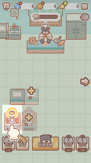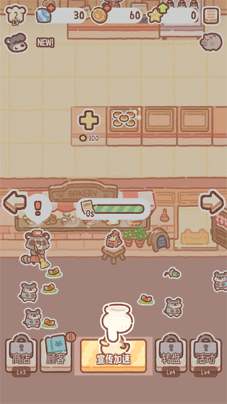 8、做新面包时,可以点击下方的和面加速按钮,快速得做出面团