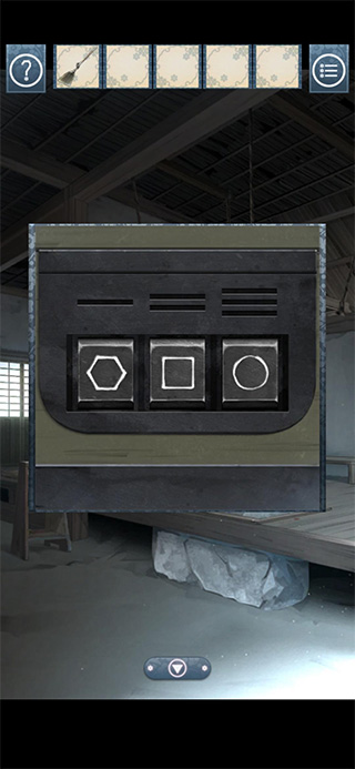 通过图形和不同数量的线段,得到第一个密码,一条线对应六边形,两条线对应正方形,三条线对应圆形,打开后得到。。。忘了是啥,好像是扳手,用扳手打开在外面房间的门(就是一开始捡到扫把和两个图案的附近)进入厨房