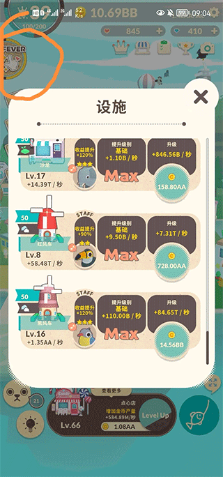 5、当金币足够多时,可以使用金币对已解锁的房屋进行等级升级
