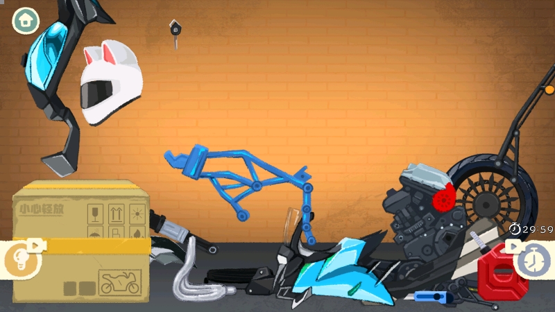 2、接着进行相关操作把摩托车组装起来。