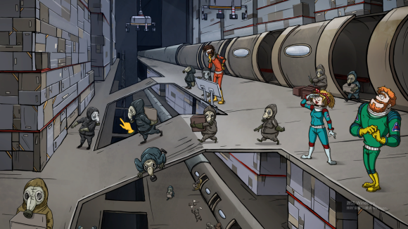 《60秒差距》一款背景设定在原子太空时代的黑色幽默科幻冒险游戏,其中还有冷战偏执狂、镀铬墙以及戴着太空头盔的蟑螂。准备的宇航员,在火箭发射升空之前,装备上随便什么垃圾——抱歉——“物资”,开启跌跌撞撞的宇宙之旅。充分利用物资,解决等其他外太空的困难。你能够找到一个新家并存活下去吗?祝你旅途愉快!
