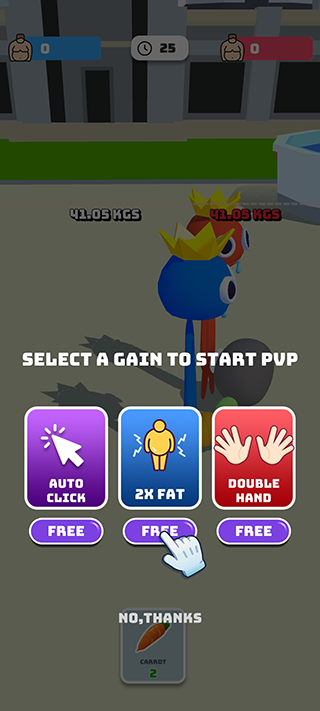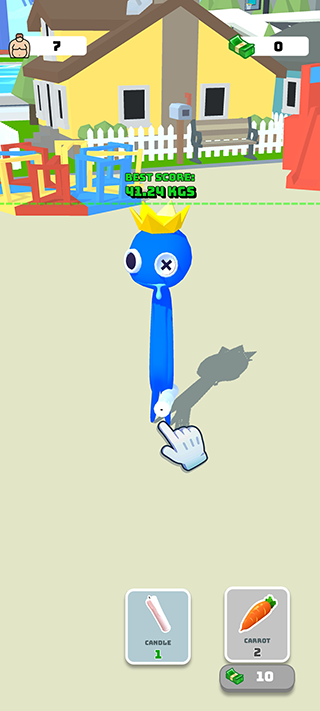 1、进入到游戏当中我们将扮演一名什么都吃的彩虹朋友,通过不断的吃食物从而增加体重更好的赚取钞票。