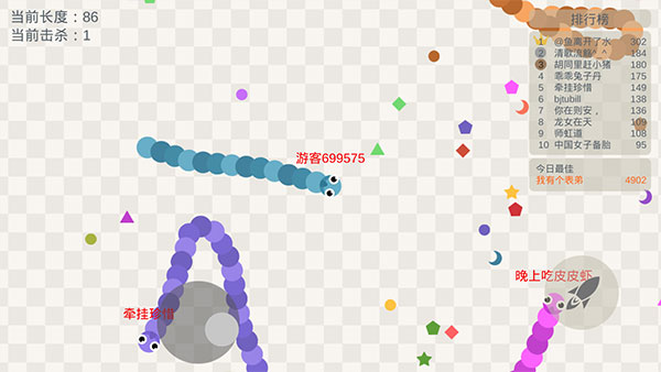 【战斗技巧,老司机教你几招】急速超车拦截蛇头、急停甩头抢道、180度华丽飘逸、画个圈圈诅咒你…这些都是战斗技巧!谁说贪吃蛇大作战只靠手速?策略也很重要,当然如果你恰好单身又练过手速 —— 完美!