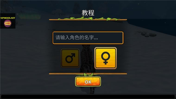 1、进入雪豹家族模拟器游戏之后,首先是定制你的雪豹,为其输入名字,选择性别。