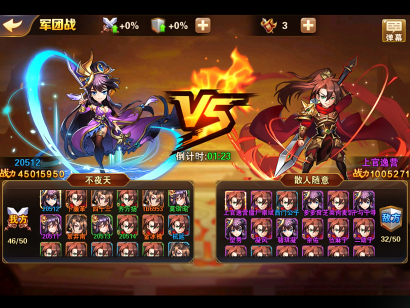 战斗开始后将由双方成员轮流上阵进行战力比拼,每位成员在胜出后可以迎战下一位对手,最多可以连胜三场。依次往复,直到一方全部成员全部被击败,仍有成员存活的军团将获得本次战斗的胜利。