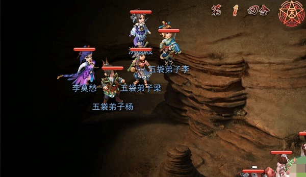前排3个伤害较高可以用八门或真空封住。第7回合时前排中间的怪会识破李莫愁,然后李莫愁会出手杀死前排3个小怪。