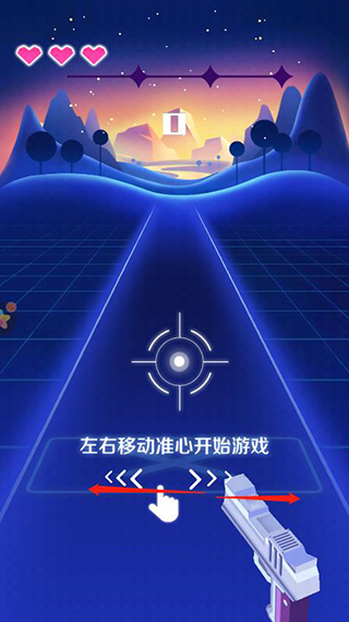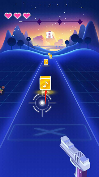 1、这款子弹节奏游戏玩法很简单,玩家需要使用枪射击音符,只要左右移动准心;