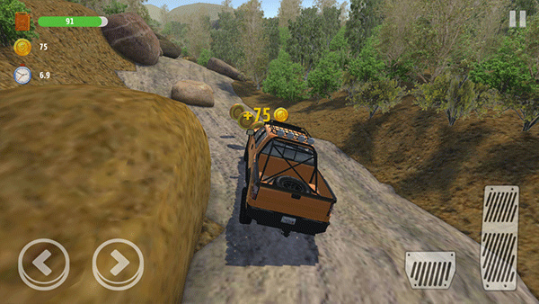 3、将驾驶越野车开始闯关,崎岖难行的山路等你来挑战,疯狂刺激的竞速玩法。