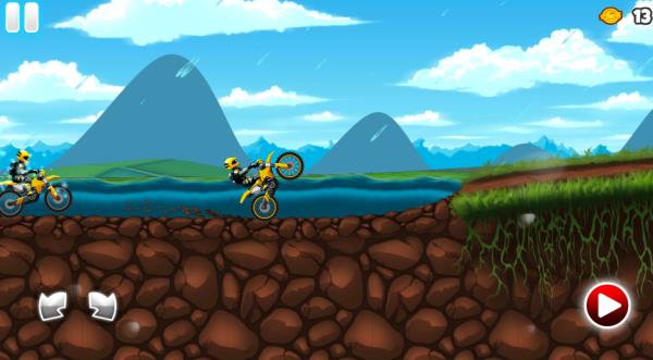越野摩托车手机版英文名“Motocross”是一款承载着童年回忆的特效赛车模拟游戏,在这里你将参加一场世界著名的大赛和其他各国的赛车手们来一场惊险刺激的摩托车比赛,每当你完成一场比赛获得胜利时,便有丰厚的金币奖励供你去购买摩托车的配件和装备,这样能让摩托车便得更加轻便快速,需要注意到的是如果你不小心掉入泥潭当中也会让屏幕失去视野!另外,越野摩托车手机版对新手也非常友好,只有3个虚拟按键组成的游戏操作,通过加速和调整赛车手的翻转位置,便能做出后空翻、前空翻等炫酷操作啦!心动的小伙伴可以下载试试!