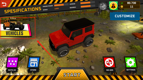 - 通过完成关卡赚取奖励,并使用它们在游戏中购买新的越野车。