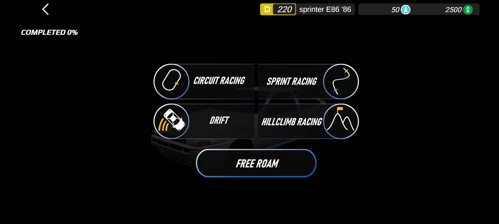3、进入后,一共有四种玩法,分别是赛车、短跑、漂移、爬坡比赛;
