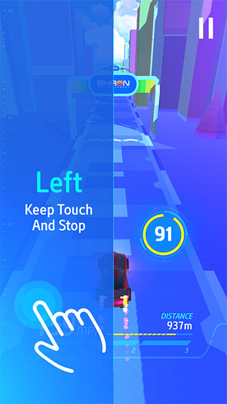 1、玩家可以通过左手键保持接触并停止来操控赛车进行向左行驶并左拐弯。