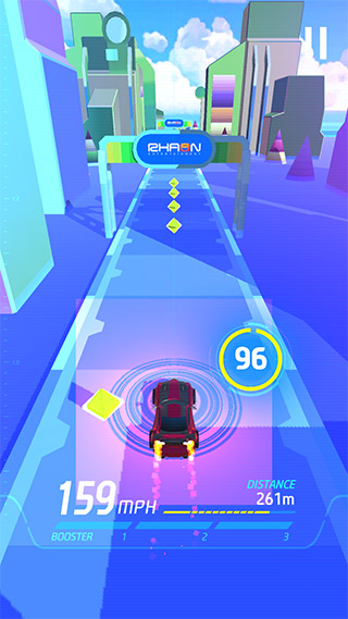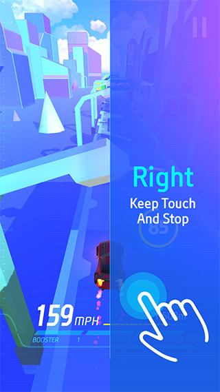 2、玩家可以通过右手键保持接触并停止来操控赛车进行向右行驶并右拐弯。