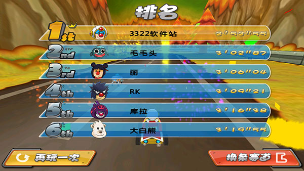 6、最后就会显示玩家的名次和具体用时,确认之后可以选择再玩一次
