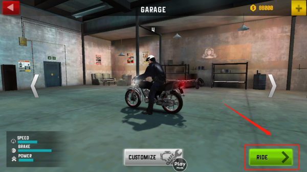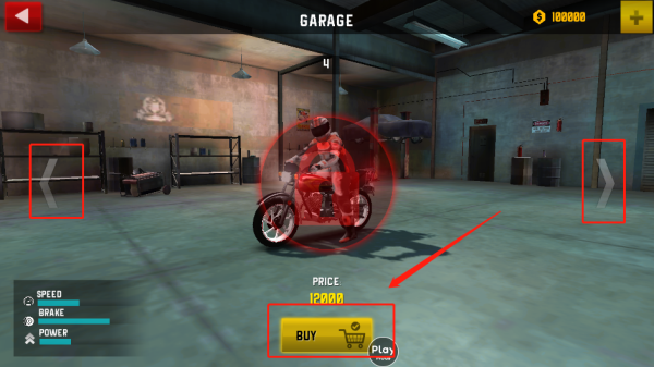 2、左右切换可更换摩托车,遇上喜欢的可以点击购买