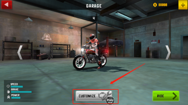 4、点击“customize”可以进行摩托车改造