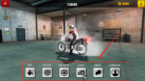 5、通过下方类别,对摩托车的外观以及驾驶员进行改造
