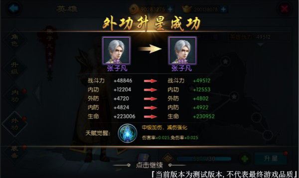 资质不同,功力也分深浅。升星系统是能够大幅提升各项属性能力和战斗力的快捷途径。在初始状态下获取的英雄星位一般为中星位,通过升星可以使弱鸡的英雄将越来越强,最高可升至大天位战斗力破天。当然强化星级越高需要消耗的侠客令以及铜币也就越多。 侠客令的获取事关生死,不同于其他游戏,游戏中侠客令除了通过常规的招募获得,还可以通过后续开放的精英副本获得。很好,这个获取方式很有诚意,请给主策划加个鸡腿。