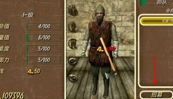 4、点击界面中的招募即可。就这样滚雪球,你可以很快建立自己的势力,还是不弱的势力,这时候你就可以去想办法获得更多的钱。