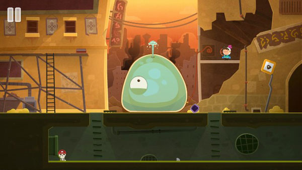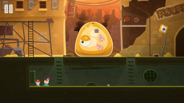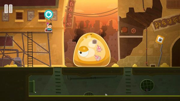 8、然后玩家需要爬到史莱姆身上,并转动消防管道的阀门来冲击史莱姆的身体。