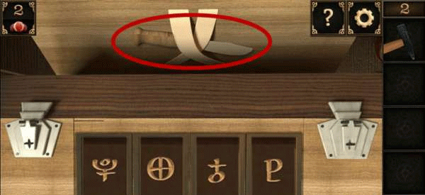 5、根据符号输入相应图案打开上方最左边的箱子,拿走小刀。