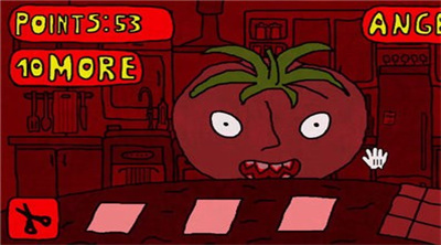 3、说了很多,你进入Boss战。用毒药毒死西红柿后,他会说你赢了,然后他的身体会崩溃,游戏会重新打开(如果愤怒值有十,那么它会冲到屏幕上,杀了你,然后退出游戏,把你送到网站上。网站也是一张图片,上面写着,谢谢你的帮助。(对了,如何再次对抗boss需要中毒boss。当然,如果你在店里买了刀,也可以用刀切西红柿。)