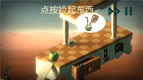最后等主人公进入镜子之后,将苹果放在中间,即可顺利过关。