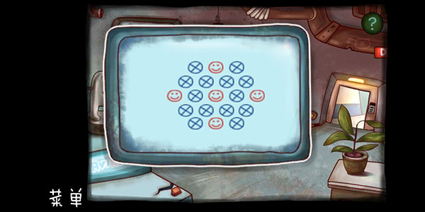 去右边的场景把左下角的电路解开。从这个场景得到水壶,拿着水壶去楼下的鱼缸里打水,再回到这个场景给这个植物浇水,得到苹果给小飞虫吃,得到钥匙把机器人解锁。
