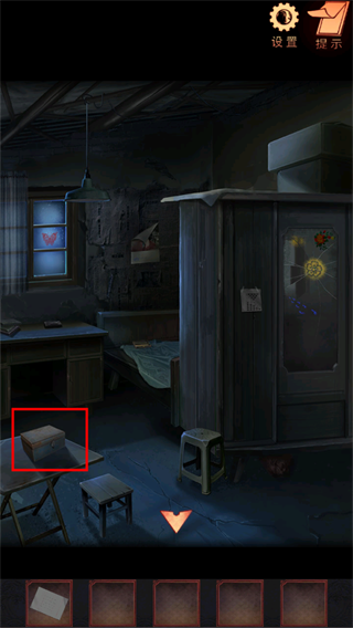 16、点击上方发光的孔洞,查看院内的纸箱,获得牛奶箱上滑块位置的线索