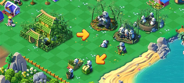 当你等级来到了29级就可以解锁竹子系列。将竹子合成到4级获得竹林后,让居民们在竹林疯狂的砍竹子就会有极小概率发现大熊猫宝宝啦。运气爆表的你再继续不停的在竹林里面砍砍砍就可以获得很多熊猫宝宝,最终可以合成获得熊猫三兄妹和熊猫乐园。