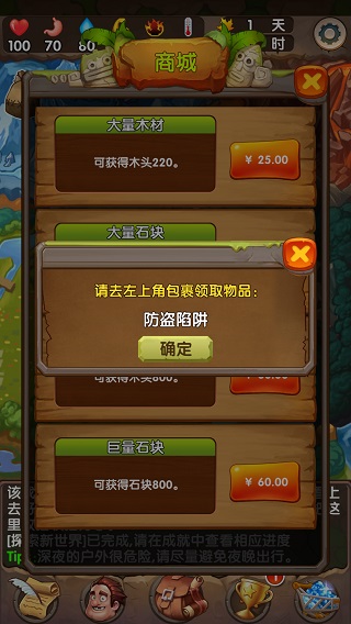 蛮荒日记是一款以石器时代为背景的原始部落生存类手游。游戏最开始进入的季节是秋天,这个季节的话最好多种一些木头为冬天准备。毕竟前期是很需要木头的,提前准备好的话,过冬也不会毫无准备。游戏设计其实挺贴近现实生活的,一个季度六十天,冬天会体温下降,所以一开始小编我建议用木头和水生成热汤维持体温,不然你也许会激活成就“体温过低而死”,这个就不太划算了哈(毕竟死亡会丢失身上所有的道具,比如我辛辛苦苦攒的魔杖,当场去世简直啊啊啊)。咳咳,言归正传。冬天的话家里的井水会冻住,所以尽量囤一些水。春天没什么特别,夏天需要说一下。多做一些冰冷药剂,基本上体温到达70+时,直接用两个降到零度左右,不会死的,反正过一会体温又上去了。游戏里的时间是24h制,22点开始晚上,这段时间外出不仅士气会下降,也容易遇到野兽袭击。当然带个火把就可以避免遇到野兽,但是士气下降之后只有四个途径恢复...所以游戏中一定要小心谨慎哦!