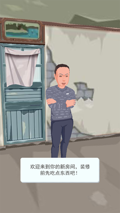 1、进入游戏后先根据系统的指引来到一间没有装修的破房子,在准备装修之前先弄点东西吃;