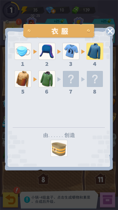6、如果想要升级则需要用篮子创造出8种不同的衣物。