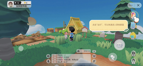 5、点击“出行”可以快速访问其他人的家园;